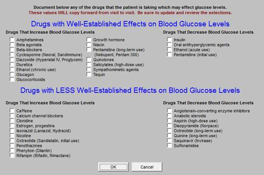 The pop-up can be launched automatically if the HbA1c is not to goal or it can be launched by clicking the button entitled,  HbA1c Treat Goal.  The ACE is the American College of Endocrinology.